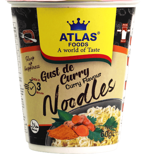 نودلز فورية بنكهة الكاري بكوب جاهز خلال حوالي 3 دقائق، مناسبة لوجبة سريعة بالبيت أو بالعمل.