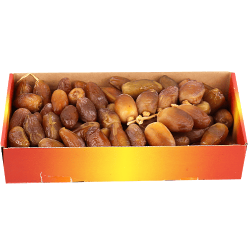 تمر جزائري فاخر من نوع دقلة المشهور بلونه الذهبي وطراوته، مناسب للأكل أو الطهي. المكونات الأساسية: تمر دقلة نور جزائري 100%.