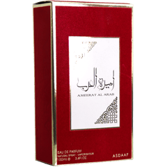 عطر أميرة العرب من أسداف (أو دو بارفان) حجم 100مل (3.4fl oz)، رائحته منعشة بالبداية حمضيات ثم زهرية مع قاعدة مسك أبيض وعنبر وخشب.