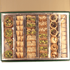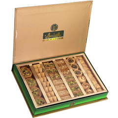 تشكيلة حلويات شرقية محشوة بالفستق والكاجو مع حلاوة متوازنة، مناسبة للضيافة والهدايا.