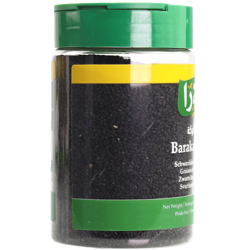 حبة البركة من لارا (تُعرف أيضاً بالحبة السوداء/الكمون الأسود/النيجيلا) بعبوة 175غ، نكهتها قوية خفيفة تميل للحمصية مع حدّة بسيطة وتستخدم كبهار ورشّة على الأطعمة.