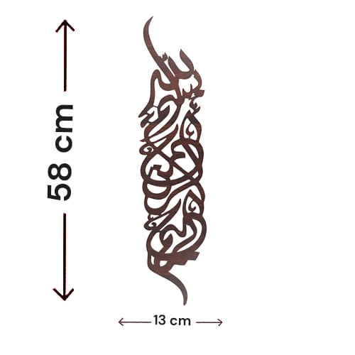 هل في ديكور خط عربي ما بياخد مساحة كبيرة؟ هذا المقاس 58×13 سم طويل ورفيع وبيطلع مرتب على الجدار.
