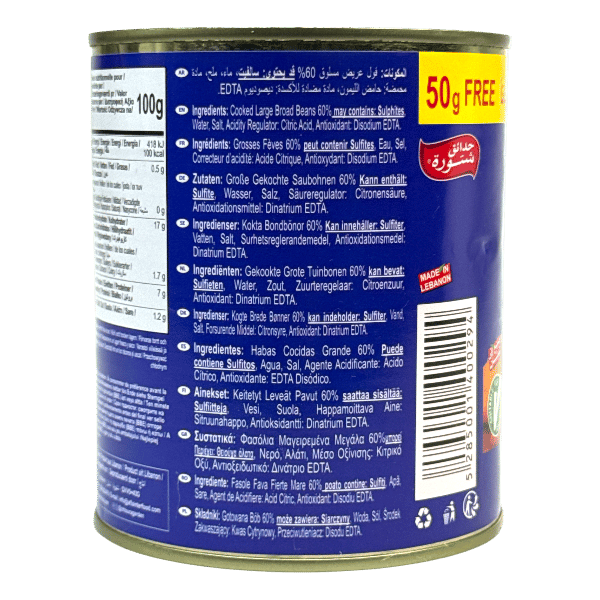 فول مدمس حبة كبيرة باجيلا شتورة 850غ