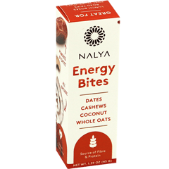 وجبة خفيفة صحية مكونة من عجينة التمر (35٪)، الكاجو (25٪)، جوز الهند (5٪)، شوفان كامل، زيت جوز الهند. غنية بالألياف والبروتين، طبيعية، ومن دون مواد صناعية. مناسبة للمدرسة، العمل أو بعد التمارين
