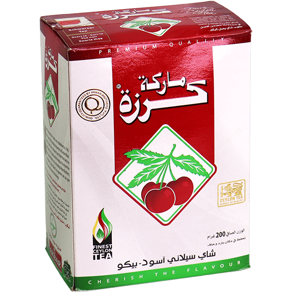 شاي سيلاني أسود صنف بيكو من ماركة كرزة بعبوة 200غ، نكهته قوية ومناسبة للشاي اليومي.