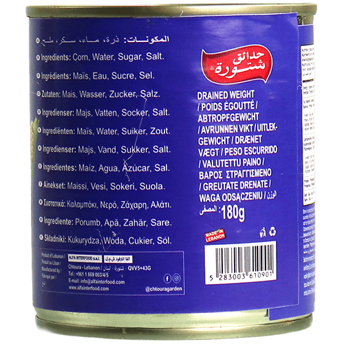 ما هي مكونات ذرة شتورة جاردن؟ ذرة، ماء، سكر، ملح.