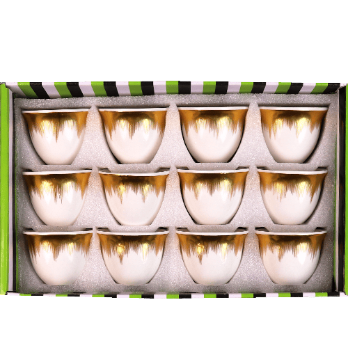 مجموعة أكواب قهوة فاخرة من السيراميك عددها 12 قطعة، مثالية لتقديم القهوة العربية أو التركية أو الاسبريسو. مصنوعة من السيراميك عالي الجودة وخالية من الصحون. المكون الأساسي: سيراميك/بورسلان.