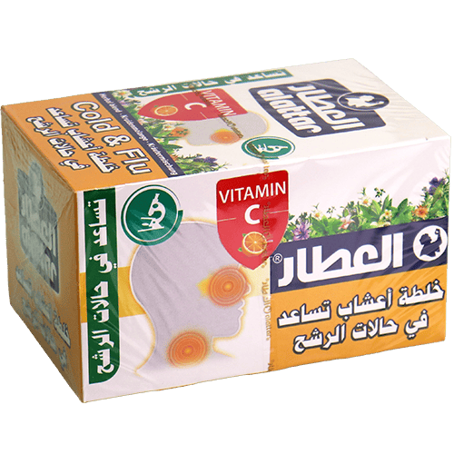خلطة أعشاب من العطار “تساعد في حالات الرشح” ضمن 12 ظرف، تُحضّر مثل الشاي وتُشرب ساخنة خصوصاً في موسم البرد.