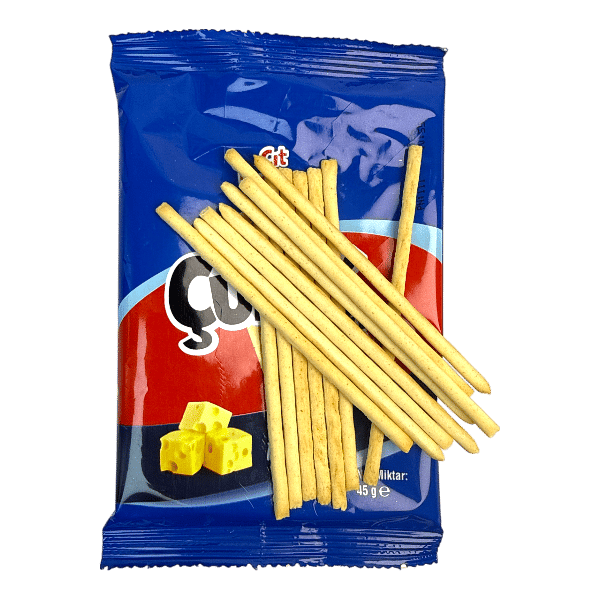 عصا بسكويت مقرمشة بنكهة الجبنة من أريس، مثالية كسناك سريع. المكونات الأساسية: دقيق القمح، زيوت نباتية، ملح، بهارات، مواد رافعة.
