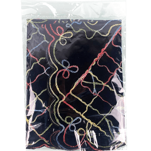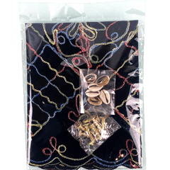 لعبة برسيـس دمشقية تقليدية بلوحة قماشية من المخمل الأسود المطرز بألوان متعددة مع بيادق معدنية وقطع من أصداف الكاوري، مثالية للجلسات العائلية وأجواء السهرات الشامية.
