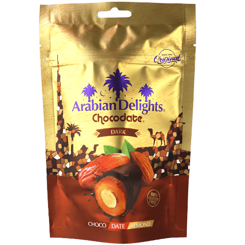 تمر محشي لوز مغطى بالشوكولاتة الداكنة أرابيان ديلايتس 100غ