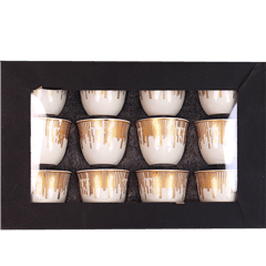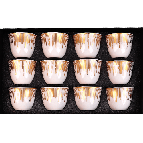 مجموعة أكواب قهوة فاخرة من السيراميك عددها 12 قطعة، مثالية لتقديم القهوة العربية أو التركية أو الاسبريسو. مصنوعة من السيراميك عالي الجودة وخالية من الصحون. المكون الأساسي: سيراميك/بورسلان.