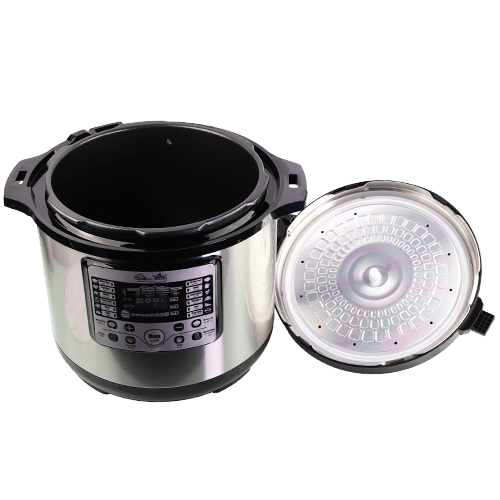 طنجرة ضغط كهربائية بسعة كبيرة 15 لتر من علامة السلطان، مناسبة للعائلات الكبيرة أو الطبخ الجماعي، تقلل وقت الطهي بشكل ملحوظ مع توزيع متساوٍ للحرارة وتحافظ على طراوة اللحم ونكهة الأكل. تعمل على كهرباء 220–240 فولت وبقدرة تقريبية 1500 واط بحسب المواصفات الظاهرة على الكرتونة.
