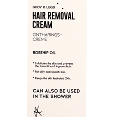 كريم لإزالة الشعر يحتوي على زيت الورد البري، مصمم للجسم والساقين. يقشر الجلد ويمنع ظهور الشعر تحت الجلد، يمنح البشرة نعومة وترطيب لمدة 24 ساعة. يمكن استخدامه أثناء الاستحمام. المكونات الأساسية: ماء، بوتاسيوم ثيوغليكولات، كحول ستيريلي، غليسرين، زيت بذور الورد البري (روزا موسكاتا)، إلى جانب مواد مغذية للجلد.
