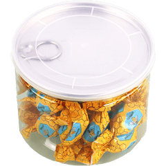 مرطبان يحتوي على حبات مصاصات عسل ملفوفة بشكل فردي، محلاة بالعسل الطبيعي لمذاق حلو طبيعي يساعد على ترطيب الحلق وتخفيف الكحة.