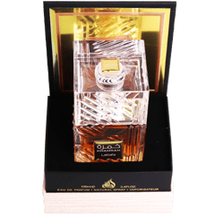 عطر خمرة من لطافة او دو بارفيوم 100مل هو عطر شرقي حلو بنفحات توابل دافئة وفانيلا وتمرات ولمسة خشبية، يمنح رائحة غنية وثابتة تناسب محبي العطور السويت الثقيلة.