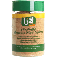 س: ما أفضل بهارات للشاورما بالبيت؟ ج: بهارات شاورما اللحم لارا 120غ مناسبة كتتبيلة جاهزة وتعطي طعم شاورما واضح.