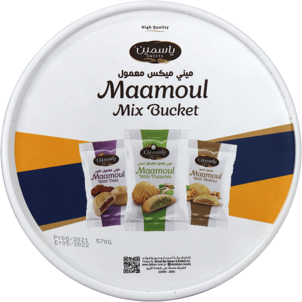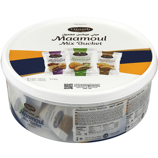 Maamoul Mix Bucket Yasmeen 570g | معمول ميكس تمر وجوز و فستق ياسمين 570غ