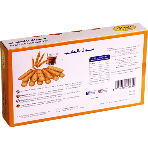 بسكويت الحليب اللذيذ من سيبال، هش وخفيف بنكهة الحليب الغنية. مثالي للفطور أو كوجبة خفيفة مع الشاي أو القهوة. المكونات الأساسية: دقيق القمح، سكر، زيت نباتي، حليب مجفف، ملح.