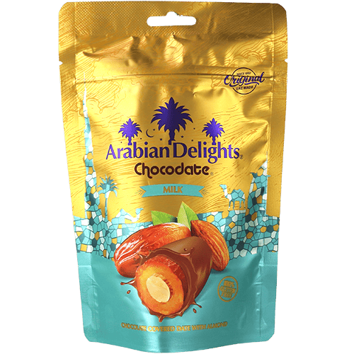 تمر محشي لوز مغطى بشوكولاتة الحليب أرابيان ديلايتس 100غ