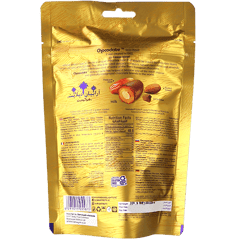 تمر محشي بحبة لوز ومغطى بطبقة شوكولاتة بالحليب (100غ)؛ مناسب للضيافة مع القهوة والشاي أو كسناك حلو وسريع.