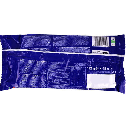 المكونات الأساسية: دقيق القمح، 16٪ حشوة كريمة الحليب (دهن النخيل، سكر، لاكتوز، حليب خالي الدسم بودرة، زيت بذور اللفت، دهن حليب)، 12٪ حشوة كريمة الشوكولاتة (سكر، زيوت نباتية، مسحوق كاكاو، حليب خالي الدسم بودرة)، بيض، خميرة، ملح.