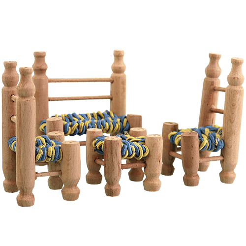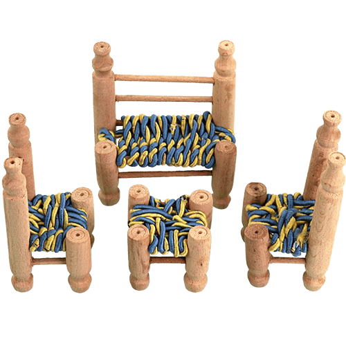 طقم مجسم صغير للديكور (4 قطع) بطابع شعبي: كنبة صغيرة مع 3 مقاعد، مناسب لبيت الدمى والديوراما وترتيب الديكور والتصوير.