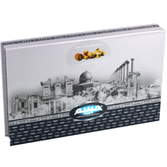 علبة فاخرة من بقلاوة حبيبه المشكلة تحتوي على تشكيلة من قطع البقلاوة الشرقية المحضرة من رقائق عجين الفيلو الهشة والمكسرات الفاخرة مع شراب سكر خفيف. تضم العلبة عادة أعشاش وفصوص رول وقطع بقلاوة محشوة بالفستق والكاجو وغيرها من المكسرات، ومصنوعة من دقيق القمح والفستق والكاجو والزبدة أو السمن وشراب السكر لتمنح طعمًا شرقياً أصيلاً.