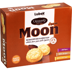 معمول محشي بالتمر بدون سكر مضاف من لوبيك (مون)، 12 قطعة ومغلف كل حبة لوحدها للمحافظة على الطزاجة.