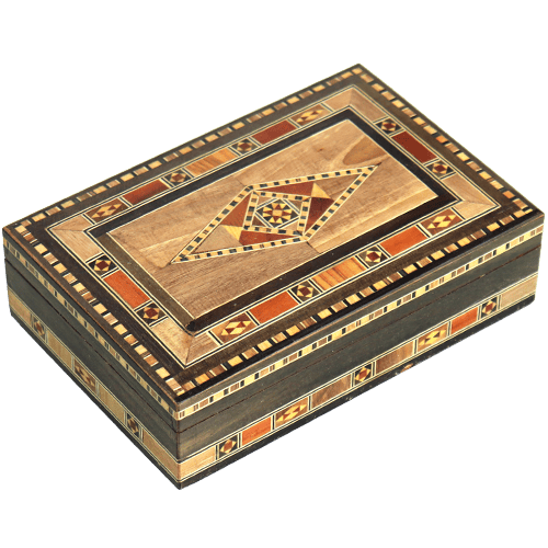 علبة خشبية مستطيلة مزخرفة بالموزاييك بحجم 19×12×5 سم، مثالية لحفظ المجوهرات والإكسسوارات الخفيفة والمسابيح والذكريات الصغيرة مع لمسة شرقية فاخرة على الطاولة أو التسريحة. يمكن استخدامها كعلبة مجوهرات يومية، أو علبة للهدايا الفاخرة، أو لحفظ العود والبخور، أو كصندوق للصور والتذكارات، أو كقطعة ديكور أنيقة في صالون بطابع شرقي. أفضل 5 استخدامات: حفظ المجوهرات والإكسسوارات، حفظ المسابيح، تقديم الهدايا، حفظ العود والبخور، واستخدامها كصندوق تذكارات على المكتب أو الرف. من أكثر الأسئلة الشائعة: ما هي أفضل علبة أنيقة لحفظ المجوهرات أو العود مع شكل شرقي مميز؟ يمكن استخدام علبة موزاييك خشب 19×12×5 سم لتمنح حماية للمقتنيات ولمسة فخامة للديكور في نفس الوقت.