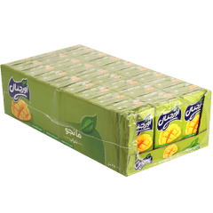 طرد شراب مانجو يحتوي على 27 عبوة كرتون سعة 250 مل لكل واحدة، بطعم مانجو حلو ومنعش مناسب للعائلة والأطفال ومصدر لفيتامين سي.