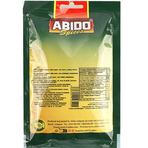 خلطة بهارات بيتزا من عبيدو تضيف نكهة عشبية مع ثوم وبصل وتناسب صلصة البيتزا، المعكرونة، والأكلات بالفرن، ويمكن استخدامها كتتبيلة خفيفة أيضاً.