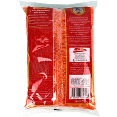 عدس أحمر مجروش عالي الجودة من علامة صباح، مثالي لتحضير الشوربات واليخنات والمهلّبات بفضل سرعة نضجه وقوامه الكريمي. المكون الأساسي: عدس أحمر مجروش 100٪.
