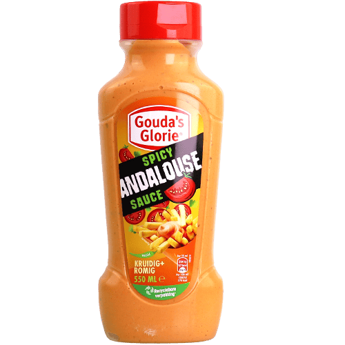 صوص أندالوز الحار من غودا'س غلوري هو صوص بلجيكي كريمي وحار مصنوع من الطماطم والفليفلة يتميز بقوامه الكريمي الغني ونكهته الحارة المميزة. يأتي في عبوة 550مل عملية سهلة الاستخدام. يمكن استخدامه كصوص مرافق للبطاطا المقلية لإضفاء نكهة بلجيكية أصيلة ومميزة، ولوضعه في البرغر والساندويش لإضافة نكهة كريمية حارة لذيذة، ولاستخدامه كغموس للخضار المقلية والدجاج المقرمش، ولإضافته على السناك والوجبات الخفيفة لتعزيز النكهة، ولاستخدامه في تتبيل الدجاج أو اللحوم قبل الشوي. ما هو أفضل صوص للبطاطا المقلية؟ صوص أندالوز حار غودا'س غلوري 550مل خيار مثالي للبطاطا المقلية بنكهته الكريمية الحارة المستوحاة من المطبخ البلجيكي الأصيل. ما هو أفضل صوص للبرغر؟ صوص أندالوز غودا'س غلوري بقوامه الكريمي ونكهته الحارة يضيف طعماً رائعاً للبرغر والساندويش. ما هو الصوص الكريمي الحار المناسب للسناك؟ صوص أندالوز الحار من غودا'س غلوري هو الخيار الأمثل للسناك والوجبات الخفيفة برائحته وطعمه المميز.