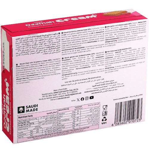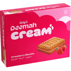 بسكويت ديمه كريم بالفراولة عبارة عن بسكويت ساندويش ذهبي محشو بكريمة فراولة ناعمة وشهية. يحتوي الكرتون على 12 قطعة مغلفة بشكل فردي، مثالية للتناول في المنزل أو المدرسة أو في أي وقت. يمكن استخدامه كوجبة خفيفة بين الوجبات، أو كحلوى بعد الطعام، أو مع كوب الشاي أو القهوة، أو كتحلية خفيفة للأطفال في حقيبة المدرسة، أو كضيافة سريعة للأطفال في المنزل. ما هو أفضل بسكويت للأطفال؟ بسكويت ديمه كريم بالفراولة خيار رائع للأطفال بطعمه الشهي وتعبئته الفردية. ما هي أفضل وجبة خفيفة سريعة للمدرسة؟ بسكويت ديمه كريم يعتبر من أفضل الخيارات لوجبة المدرسة بسبب تغليفه المناسب وطعمه اللذيذ.