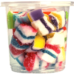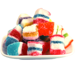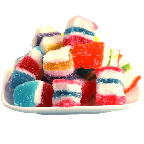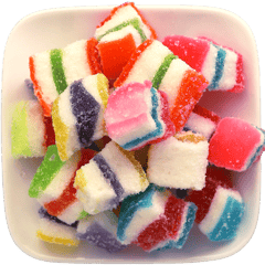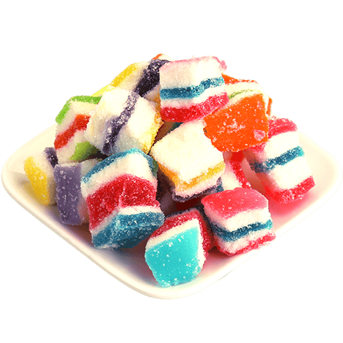 مكعبات جيلي ملونة بطبقات جميلة ومغطاة بالسكر، مناسبة للضيافة والقرمشة الخفيفة مع الشاي أو القهوة. أفضل 5 استخدامات: للضيافة على صحن الحلويات، لتعبئة أكياس هدايا الحفلات، لبوفيه الحلويات والكاندي بار، للتزيين فوق الكب كيك/الدونات (كقطعة تزيين)، كسناك حلو أثناء السفر أو بالسيارة. أسئلة شائعة: كيف أحفظها؟ احفظها بمكان بارد وجاف وبعلبة محكمة. هل تناسب المناسبات؟ نعم ممتازة للضيافة وتقديمها مع حلويات أخرى. هل يمكن وضعها على الحلويات؟ نعم كقطع تزيين أو داخل علب الحلويات المشكلة. هل هي قاسية أم طرية؟ عادة تكون طرية من الداخل مع طبقة سكر خفيفة من الخارج. ما حجمها؟ مكعبات صغيرة مناسبة للأكل لقمة.