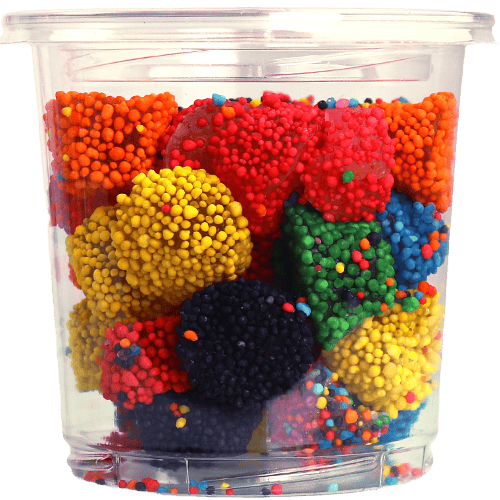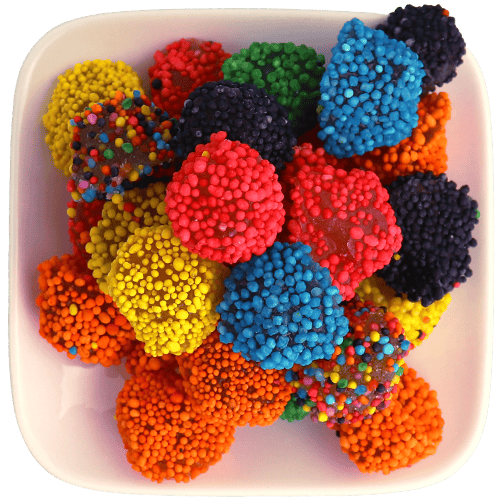 حلوى جيلي ملونة ومغطاة بحبيبات مقرمشة، مناسبة للضيافة والكاندي بار وتقديمها للأطفال والكبار. أفضل 5 استخدامات: للضيافة مع الشاي والقهوة، لبوفيه الحلويات والكاندي بار بالمناسبات، لتعبئة أكياس توزيعات الحفلات، كسناك حلو خلال اليوم، لتزيين طاولة الحلويات وإضافة ألوان جذابة. أسئلة شائعة: هل تناسب الحفلات؟ نعم ممتازة للتوزيعات والضيافة. هل القوام طري أم قاسي؟ غالباً الجيلي طري من الداخل مع طبقة خارجية مقرمشة. كيف نحفظها؟ بمكان بارد وجاف وبعلبة محكمة لتبقى طازجة. هل تصلح للأطفال؟ نعم كحلوى ملونة محببة (يفضل الإشراف للصغار جداً). هل يمكن استخدامها كجزء من بوكس حلويات؟ نعم تعطي شكل وألوان متنوعة داخل بوكسات الحلويات المشكلة.