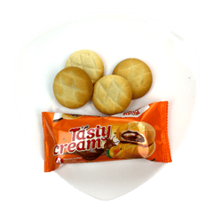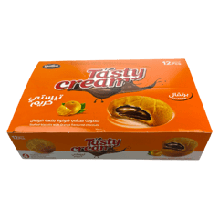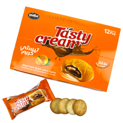 بسكويت تيستي كريم من إنتاج مكي محشو بشوكولا بنكهة البرتقال. تحتوي العبوة على 12 قطعة. المكونات الأساسية: دقيق القمح، زيوت نباتية، سكر، كاكاو، شوكولا، نكهات البرتقال.