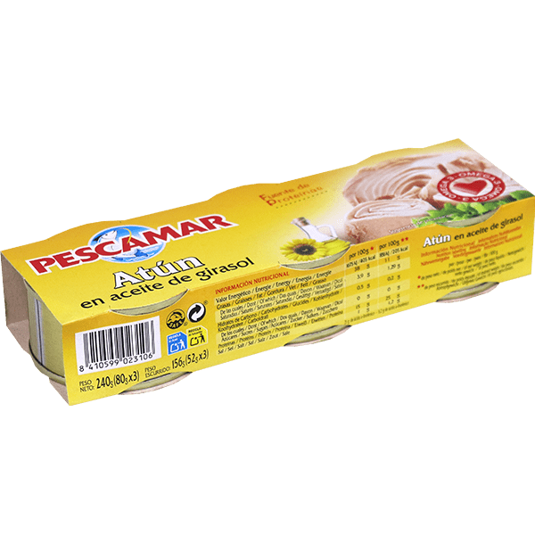 Tuna In Oil Pescamar 80g 3 Pieces | تونا بزيت عباد الشمس بسكمار 3 قطع 80غ