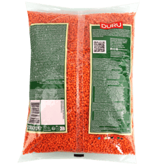 عدس أحمر حب (فوتبول) من دورو، مناسب للشوربات واليخنات وكفتة العدس لأنه يعطي قواماً ممتازاً وطعماً غنيّاً بعد السلق.